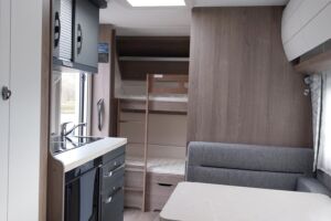Hobby 470 KMF One Tour mit Etagenbetten und sehr schöner umfangreicher Ausstattung. Er hat ein Festbett und eine separate Sitzgruppe, sowie 2 Etagenbetten. Ideal für 4-5 Personen.